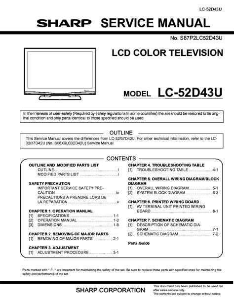 Presently you are looking with regard to an Sharp Lc 52d43u Lcd Tv Service Manual example that will we provide here inside some form of document formats like as PDF, Doc, Strength Point, as well as images that will will make it simpler for you to create an Sharp Lc 52d43u Lcd Tv Service Manual yourself. For a more clear look, you may open some examples below. All of the examples about Sharp Lc 52d43u Lcd Tv Service Manual on this site, we get from a number of sources so you could create a better document of your own.